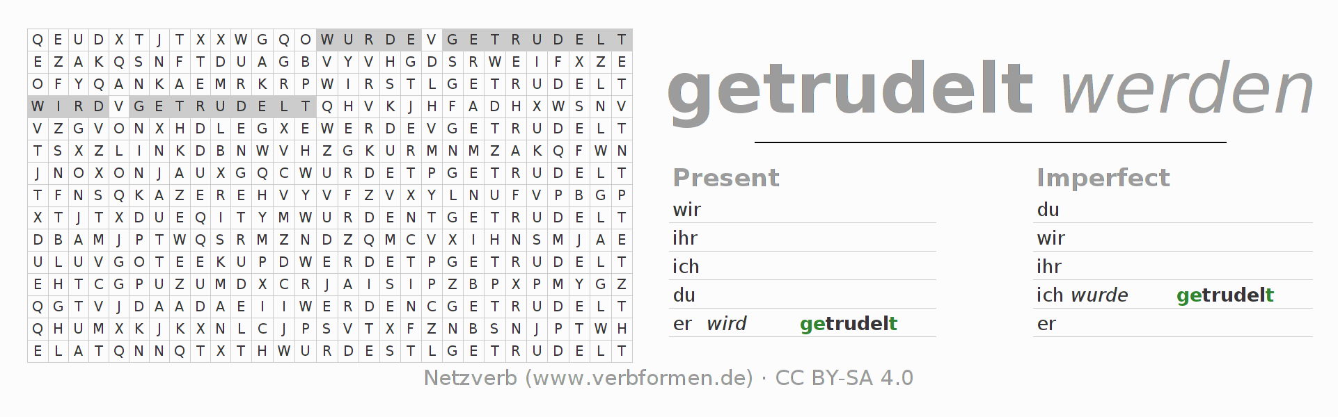 With these search word puzzles you can learn the conjugation of the German verb trudeln.
