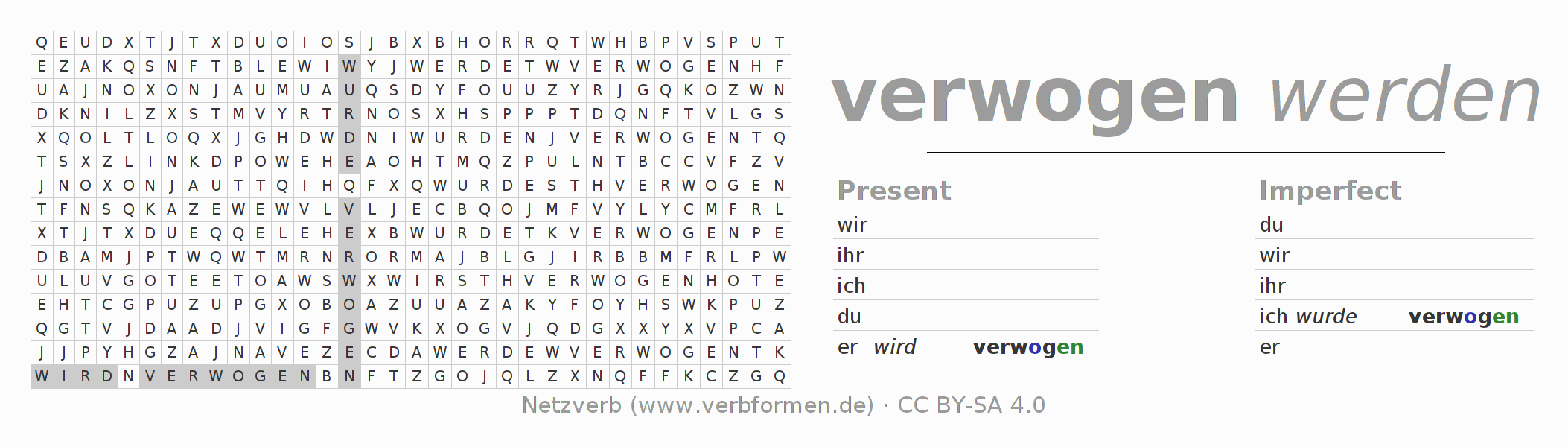 With these search word puzzles you can learn the conjugation of the German verb verwiegen.