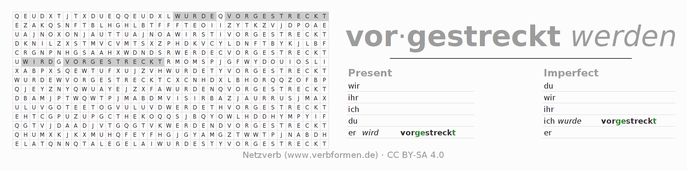 With these search word puzzles you can learn the conjugation of the German verb vorstrecken.
