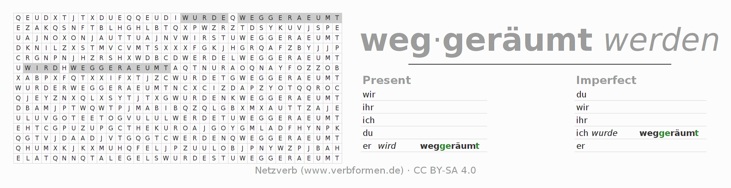 With these search word puzzles you can learn the conjugation of the German verb wegräumen.