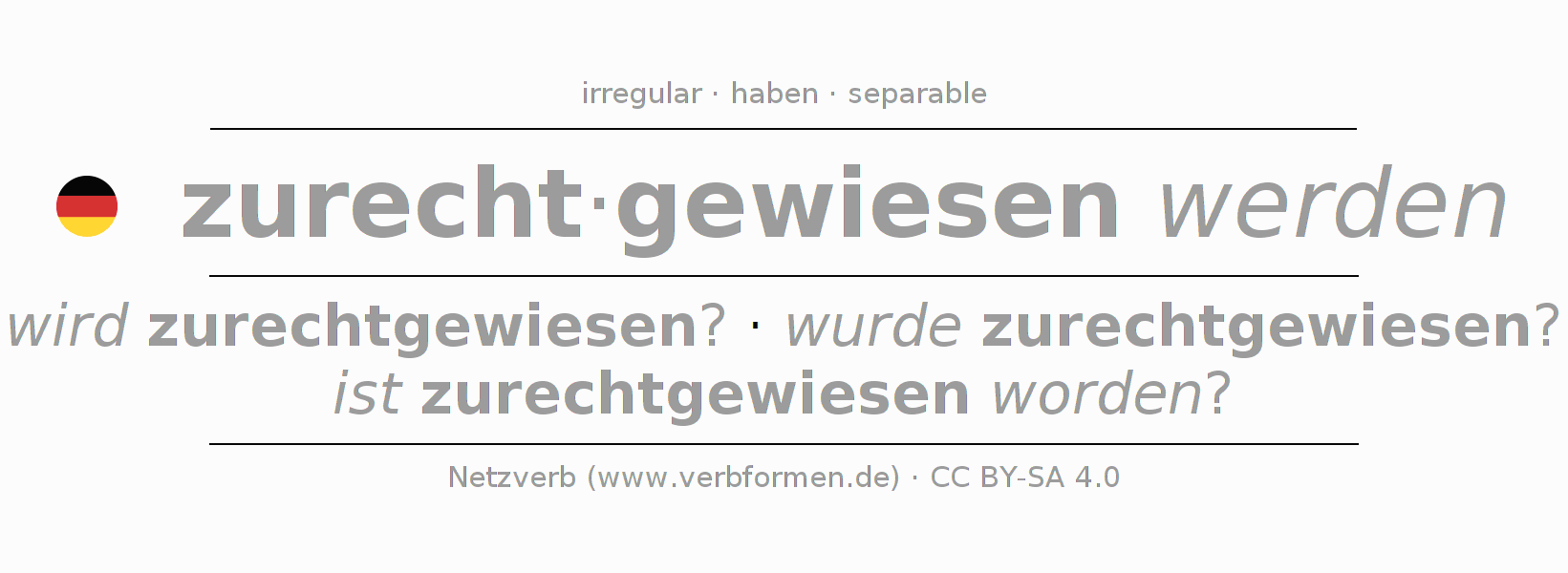 Worksheets for conjugation of German Verb zurechtweisen 〈Passive〉 〈Interrogative〉