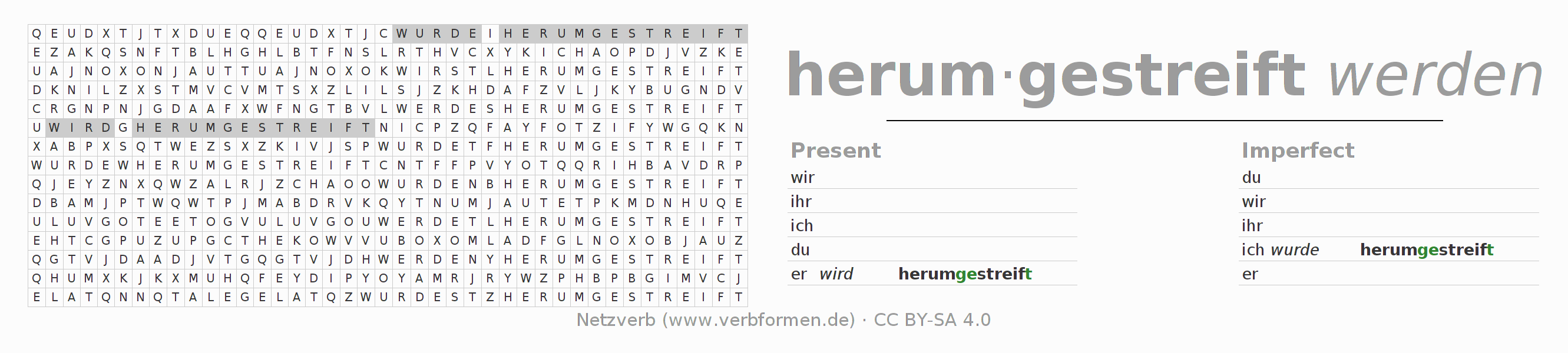 With these search word puzzles you can learn the conjugation of the German verb herumstreifen.
