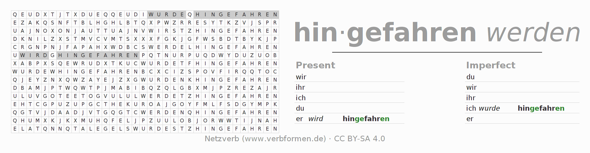 With these search word puzzles you can learn the conjugation of the German verb hinfahren.