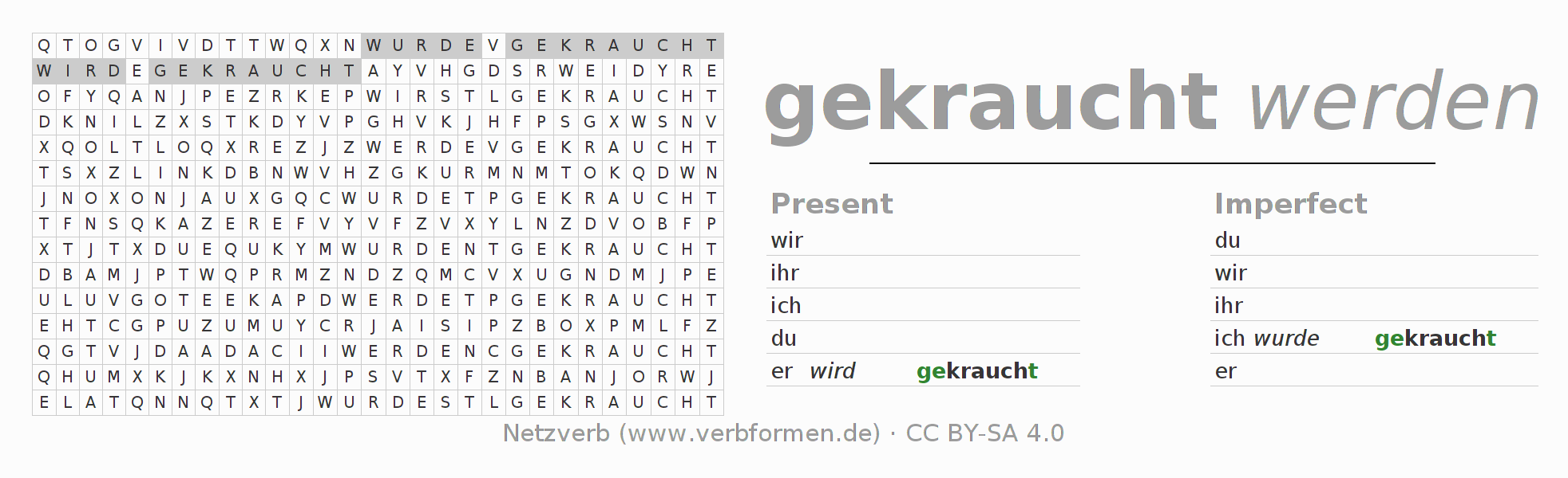 With these search word puzzles you can learn the conjugation of the German verb krauchen.