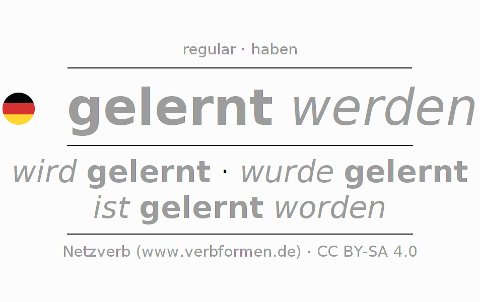 Worksheets are used generally for the conjugation of the verb lernen in teaching. The materials can be used as Open Educational Resources (OER) for exercises, for games and as Tasks (CC BY-SA 4.0). There are many different types of tasks available for the verb lernen. These are overview sheets with complete conjugation, puzzles and games that require joint learning. The entire educational material is available for free as a PDF download, as pictures and as an interactive browser version. In addition to the tasks, countless examples for lernen also provide an aid to using the verb.