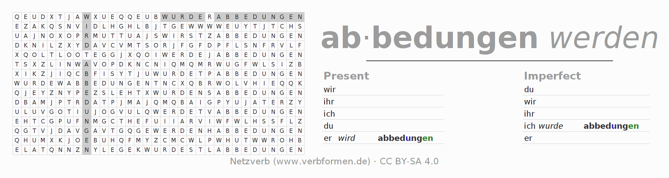 With these search word puzzles you can learn the conjugation of the German verb abbedingen.