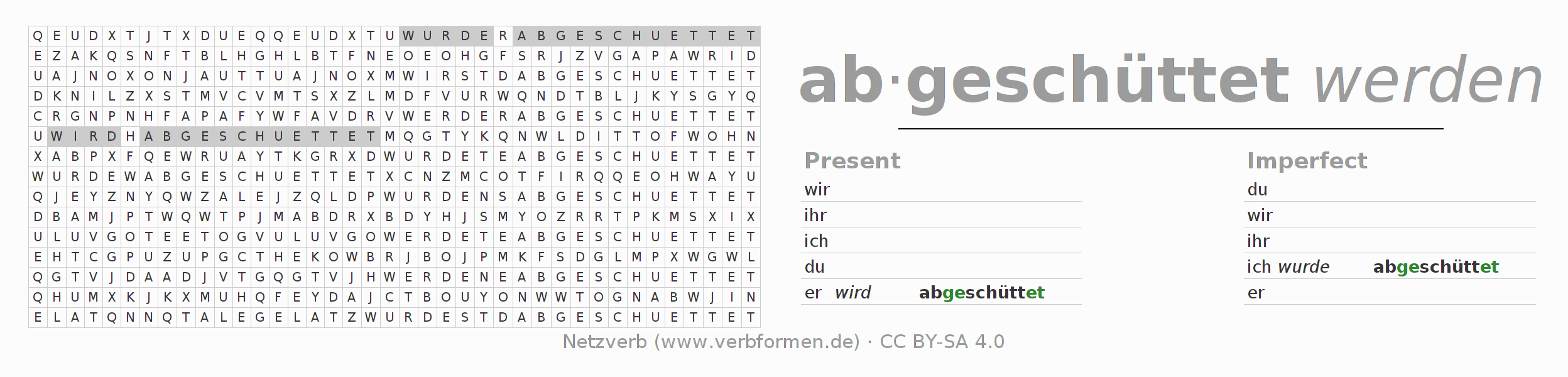 With these search word puzzles you can learn the conjugation of the German verb abschütten.
