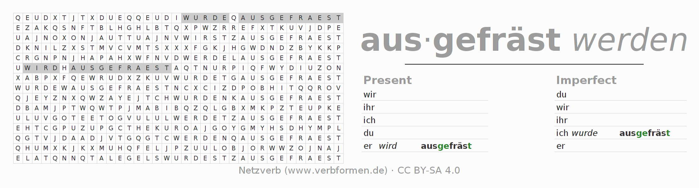With these search word puzzles you can learn the conjugation of the German verb ausfräsen.