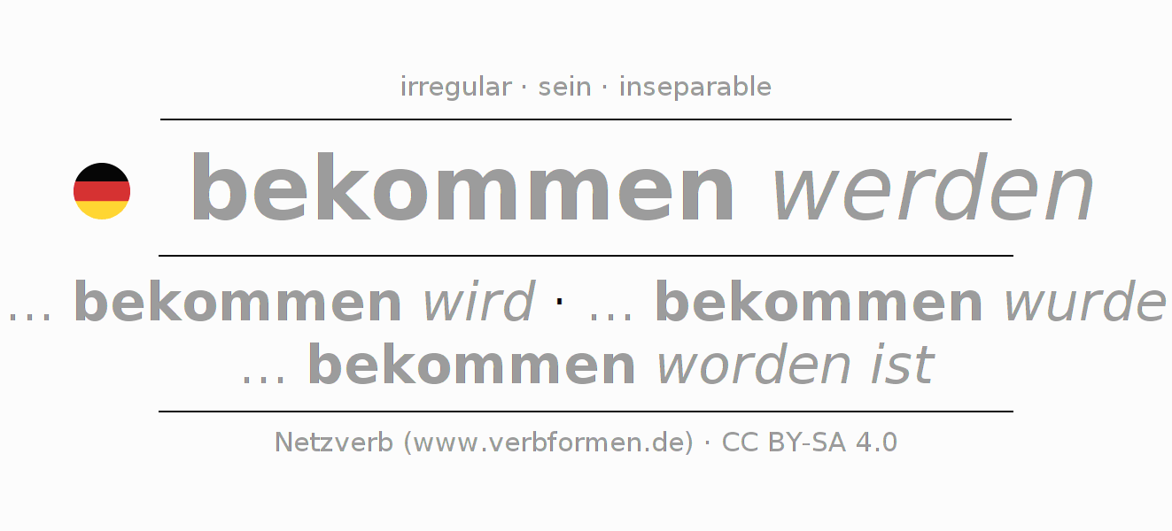 Conjugation tables for all tenses of the verb bekommen (ist)