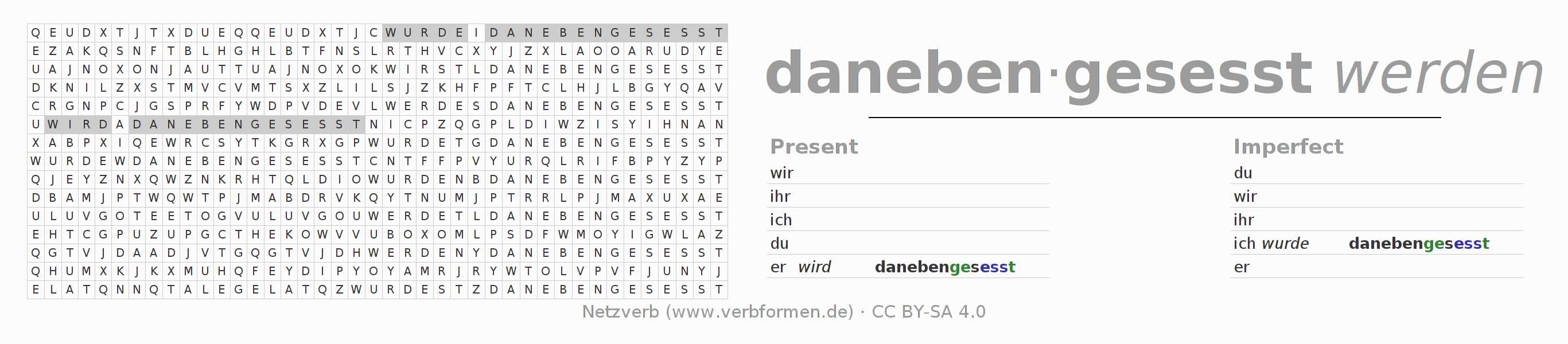 With these search word puzzles you can learn the conjugation of the German verb danebensitzen.