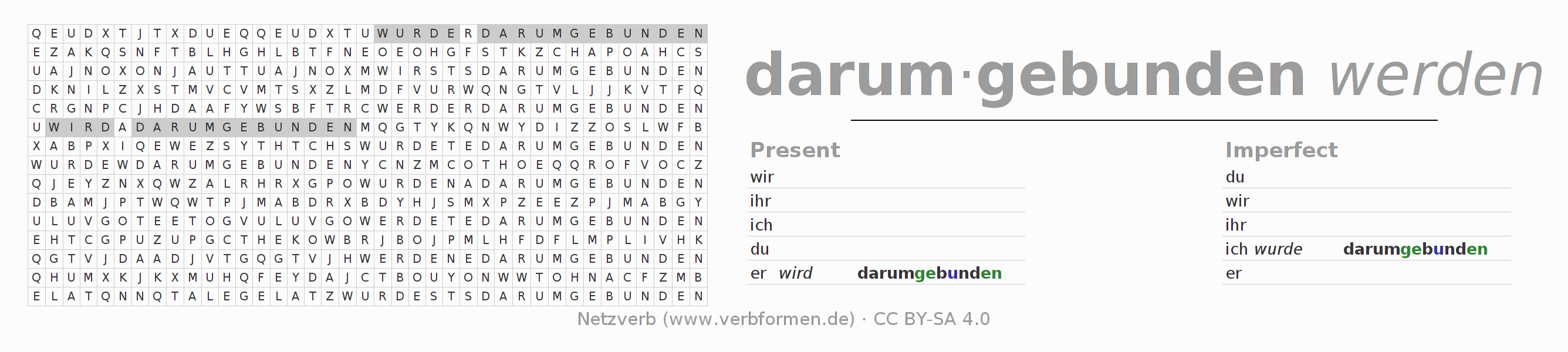 With these search word puzzles you can learn the conjugation of the German verb darumbinden.