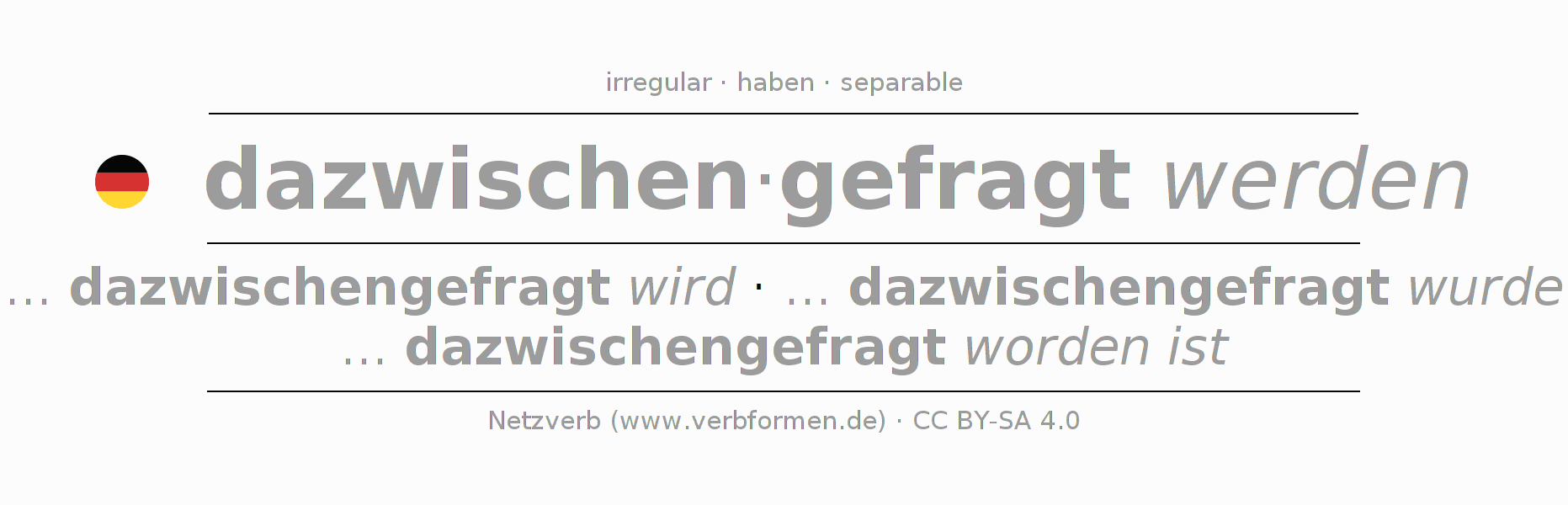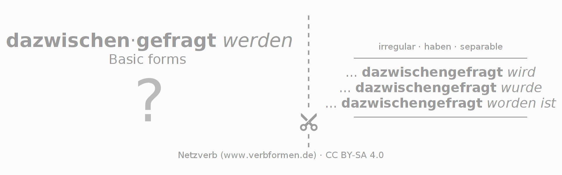 Conjugation tables for all tenses of the verb dazwischenfragen (unr)