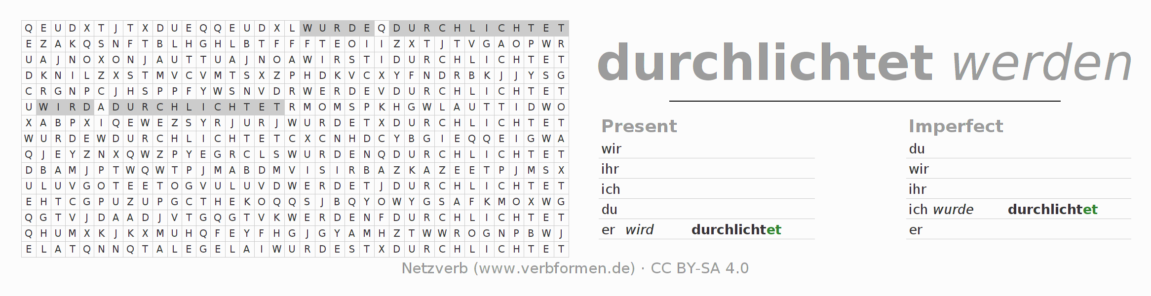 With these search word puzzles you can learn the conjugation of the German verb durchlichten.