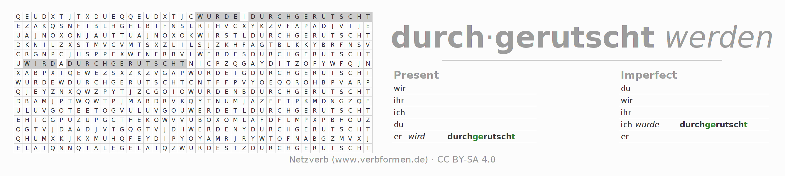 With these search word puzzles you can learn the conjugation of the German verb durchrutschen.