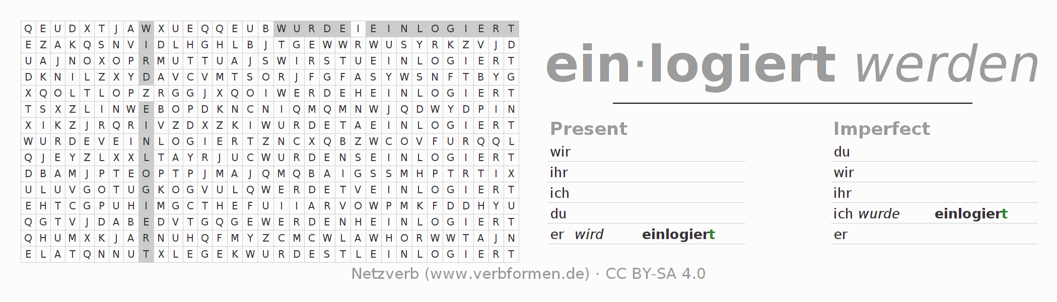 With these search word puzzles you can learn the conjugation of the German verb einlogieren.