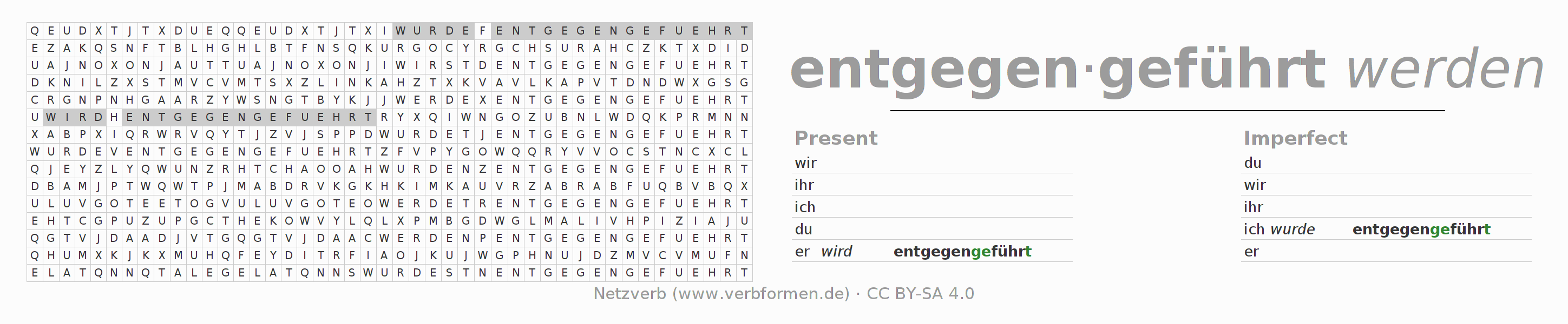With these search word puzzles you can learn the conjugation of the German verb entgegenführen.