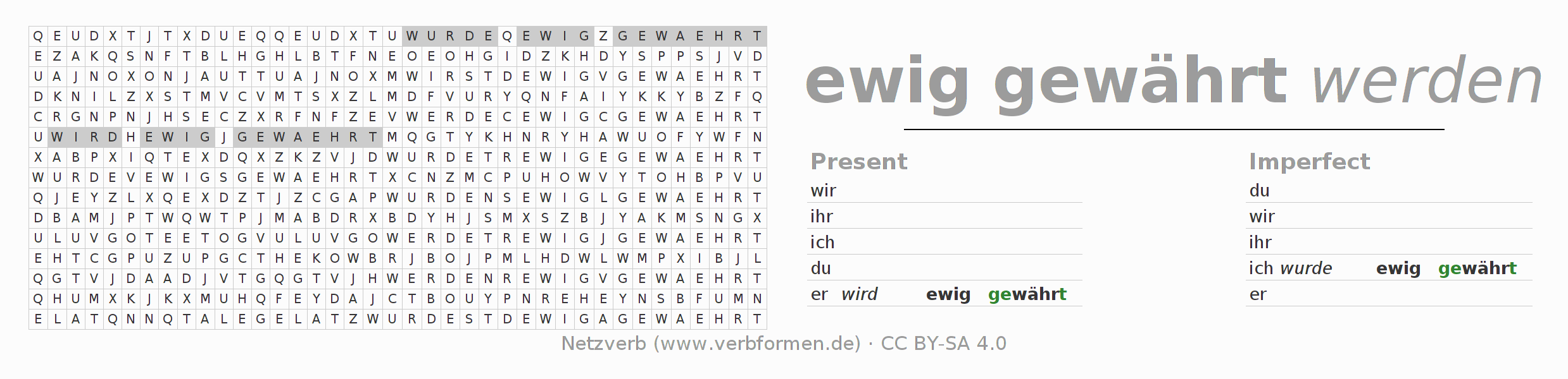 With these search word puzzles you can learn the conjugation of the German verb ewigwähren.