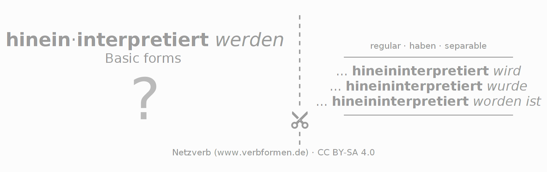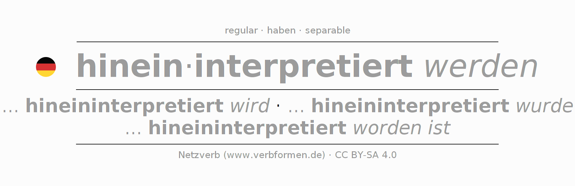 Conjugation tables for all tenses of the verb hineininterpretieren