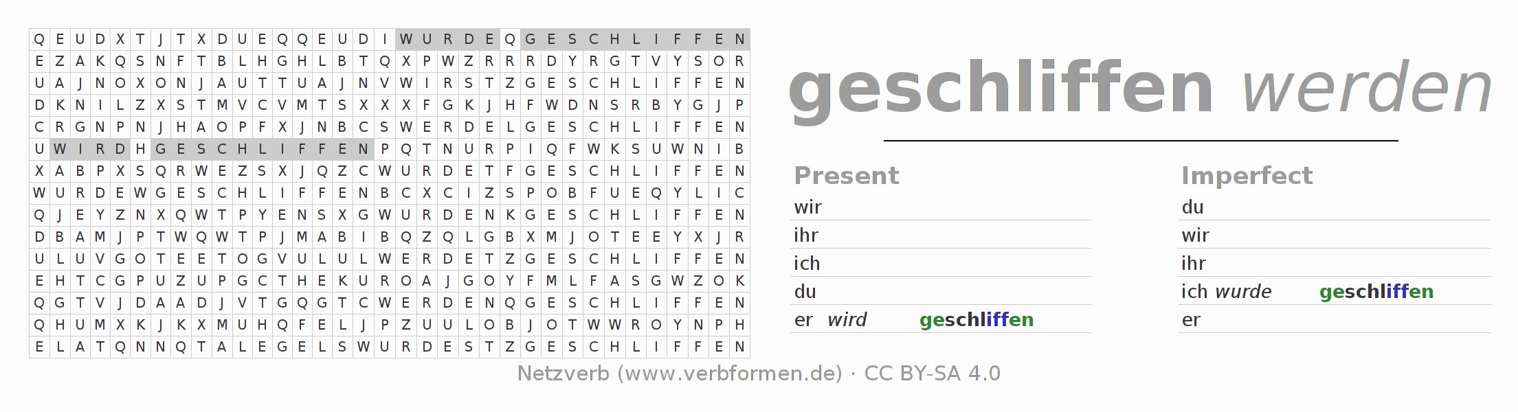 With these search word puzzles you can learn the conjugation of the German verb schleifen.