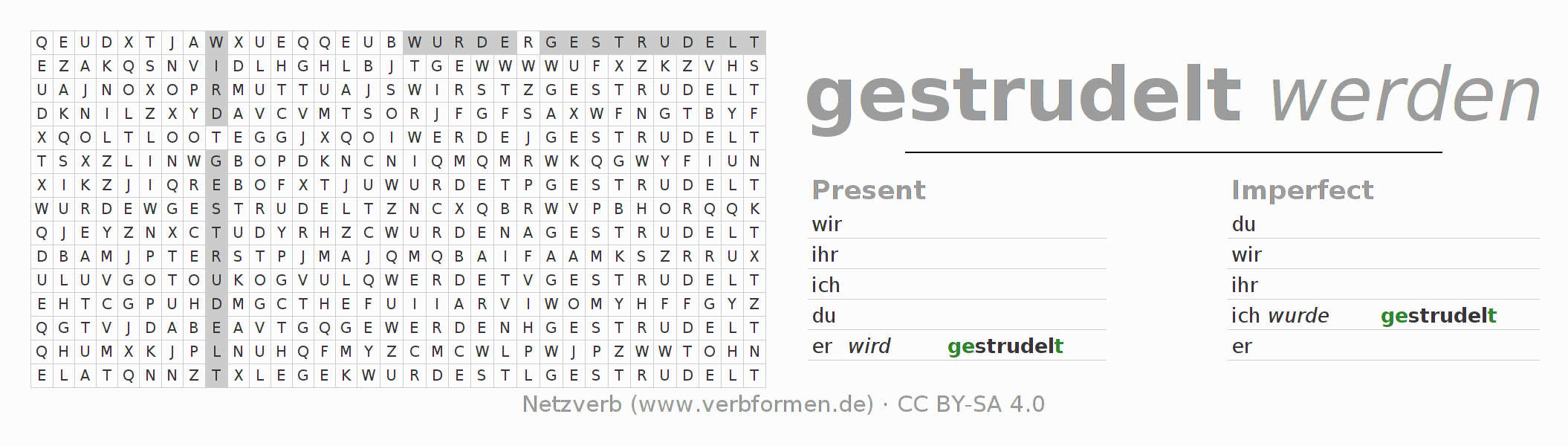 With these search word puzzles you can learn the conjugation of the German verb strudeln.