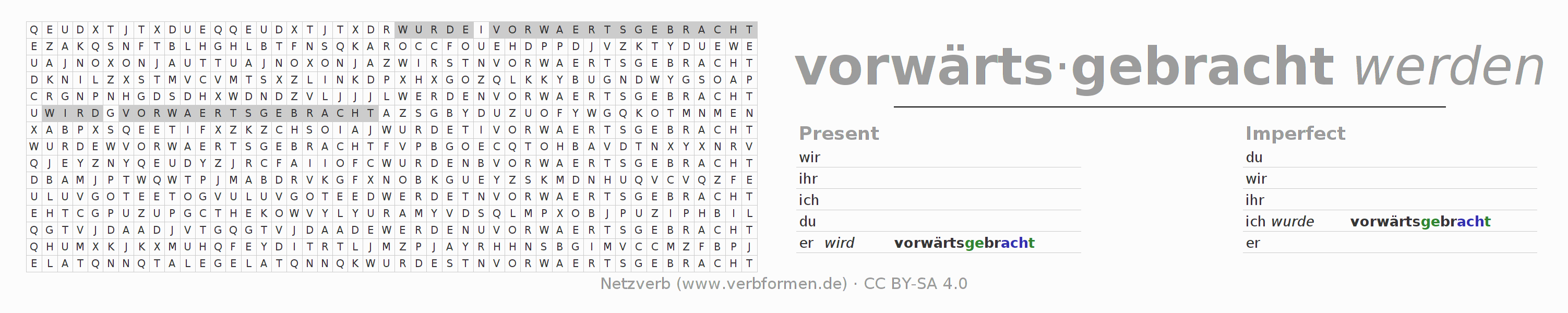 With these search word puzzles you can learn the conjugation of the German verb vorwärtsbringen.