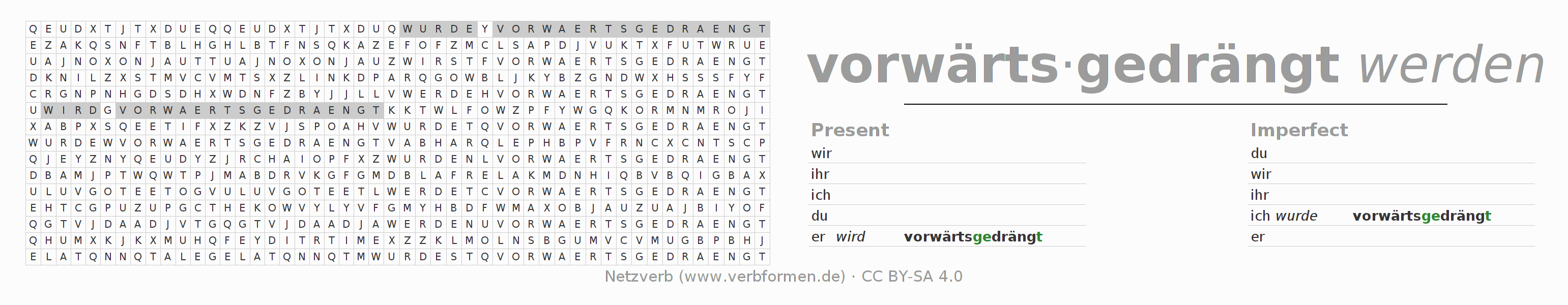 With these search word puzzles you can learn the conjugation of the German verb vorwärtsdrängen.