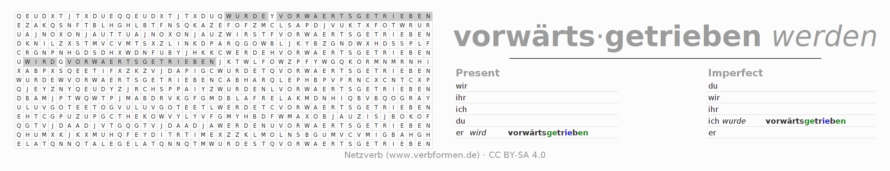 With these search word puzzles you can learn the conjugation of the German verb vorwärtstreiben.