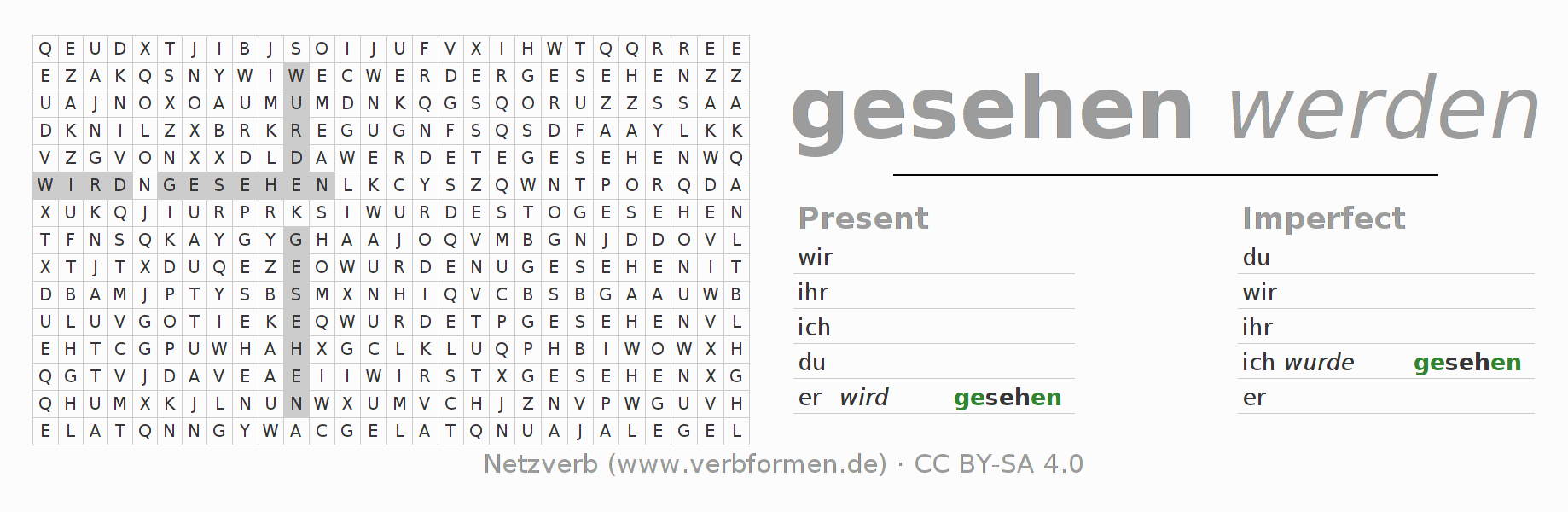 With these search word puzzles you can learn the conjugation of the German verb sehen.