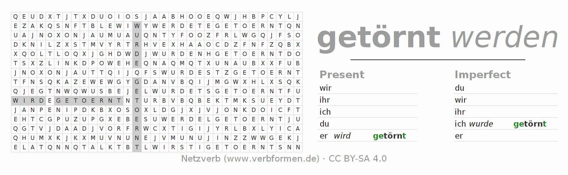 With these search word puzzles you can learn the conjugation of the German verb törnen.
