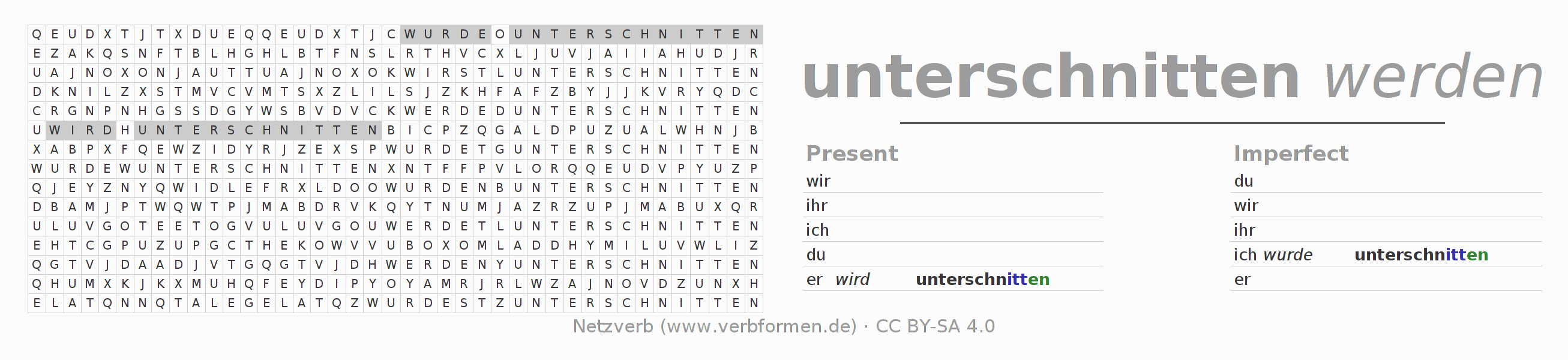With these search word puzzles you can learn the conjugation of the German verb unterschneiden.