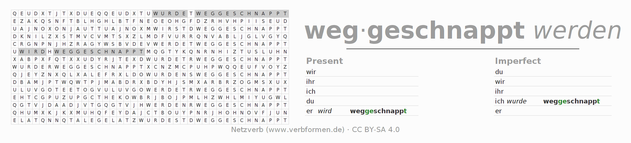 With these search word puzzles you can learn the conjugation of the German verb wegschnappen.