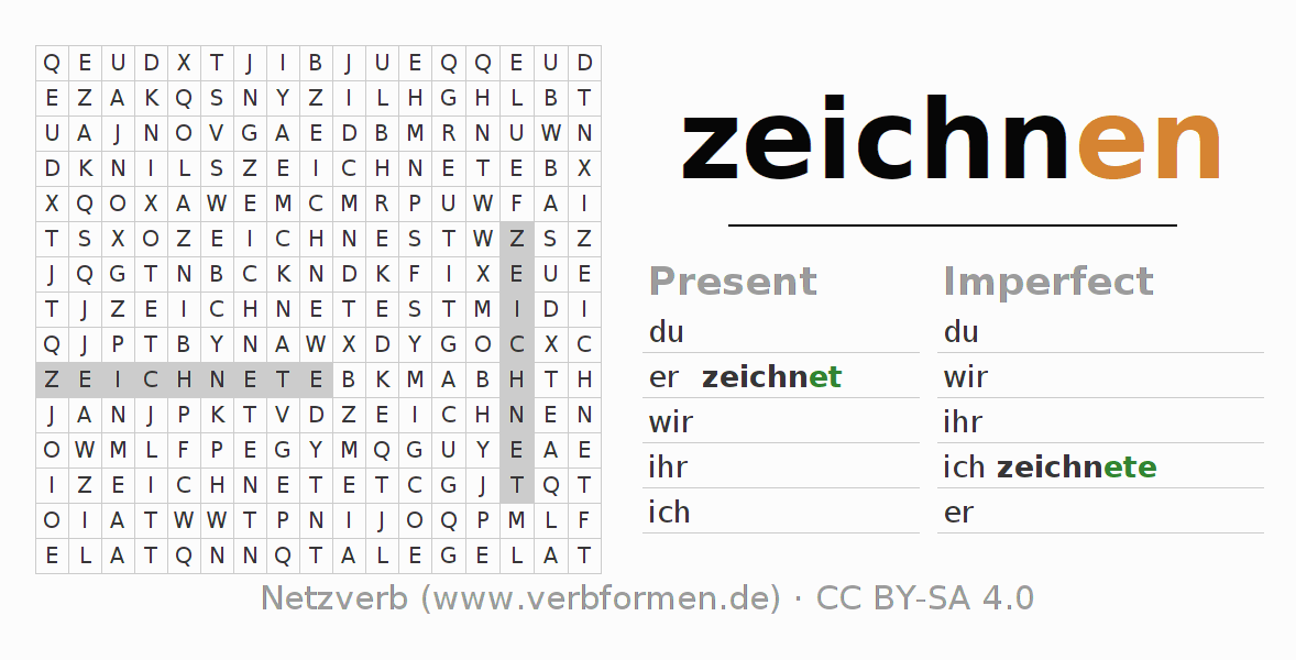 With these search word puzzles you can learn the conjugation of the German verb zeichnen.