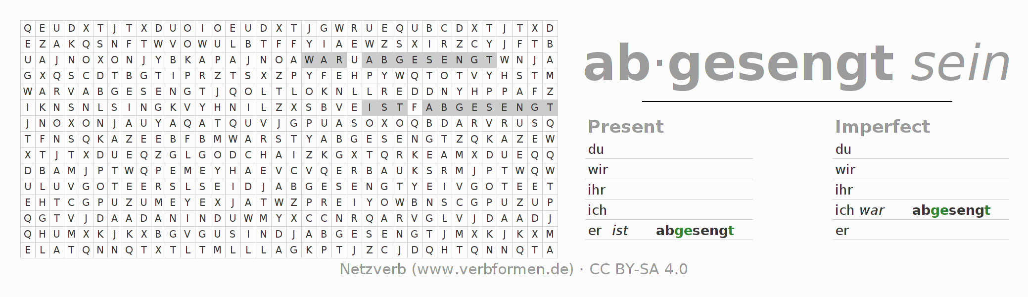 With these search word puzzles you can learn the conjugation of the German verb absengen.