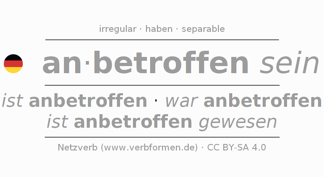 Worksheets are used generally for the conjugation of the verb anbetreffen in teaching. The materials can be used as Open Educational Resources (OER) for exercises, for games and as Tasks (CC BY-SA 4.0). There are many different types of tasks available for the verb anbetreffen. These are overview sheets with complete conjugation, puzzles and games that require joint learning. The entire educational material is available for free as a PDF download, as pictures and as an interactive browser version. In addition to the tasks, countless examples for anbetreffen also provide an aid to using the verb.