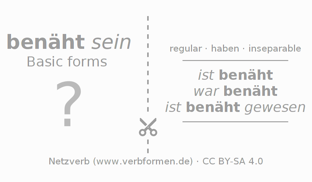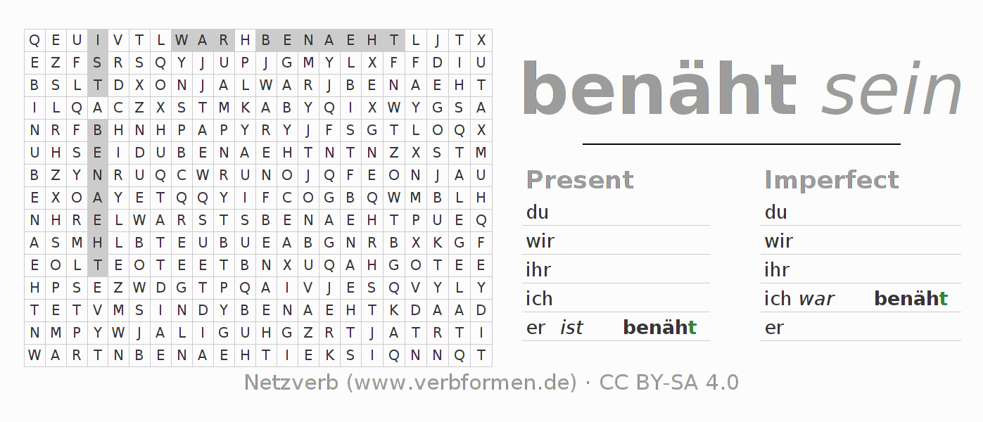Conjugation tables for all tenses of the verb benähen