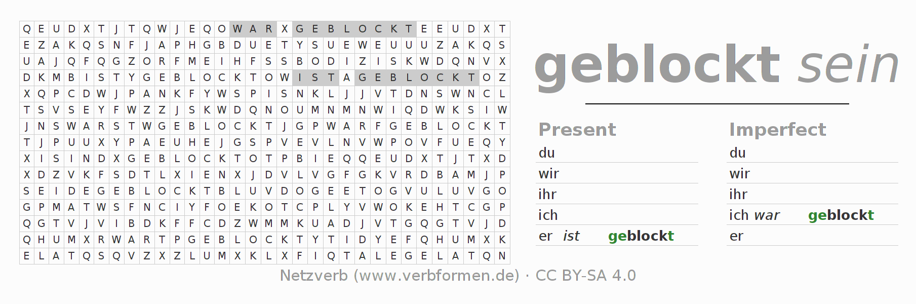 With these search word puzzles you can learn the conjugation of the German verb blocken.
