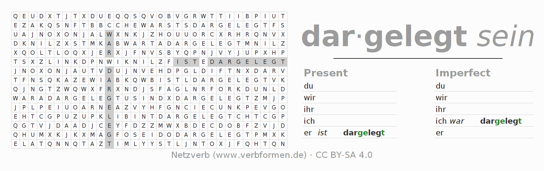 With these search word puzzles you can learn the conjugation of the German verb darlegen.