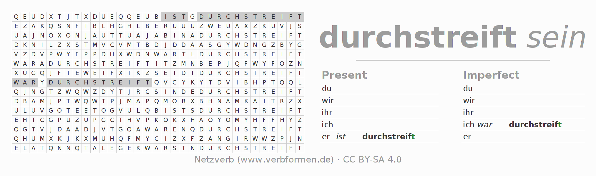 With these search word puzzles you can learn the conjugation of the German verb durchstreifen.