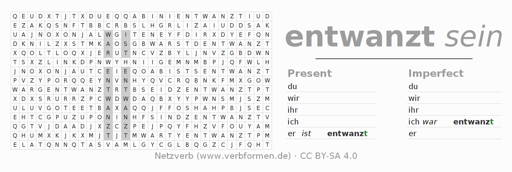 With these search word puzzles you can learn the conjugation of the German verb entwanzen.