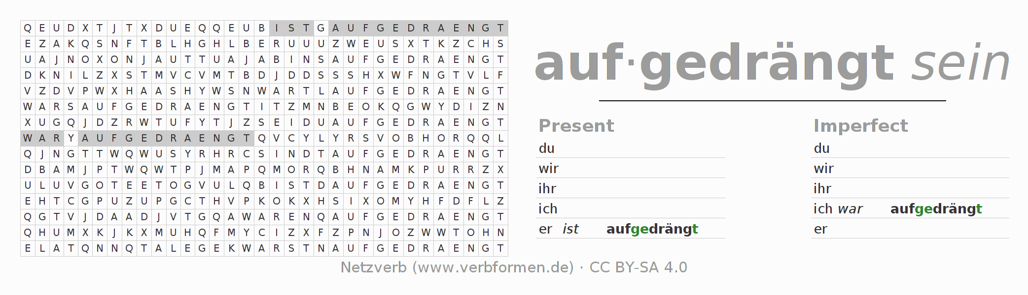 With these search word puzzles you can learn the conjugation of the German verb aufdrängen.