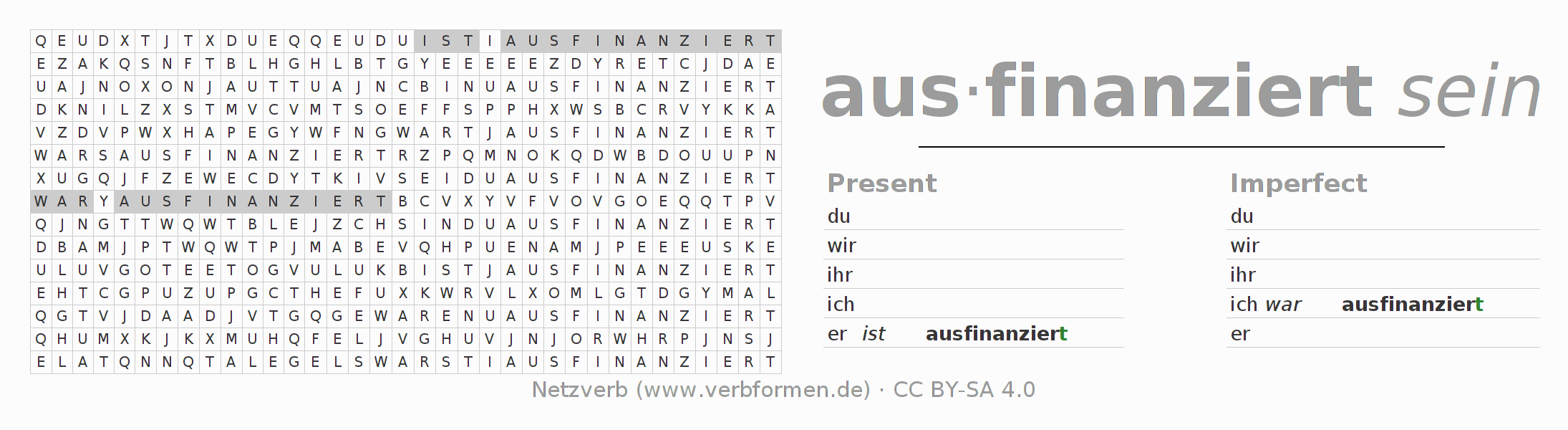 With these search word puzzles you can learn the conjugation of the German verb ausfinanzieren.