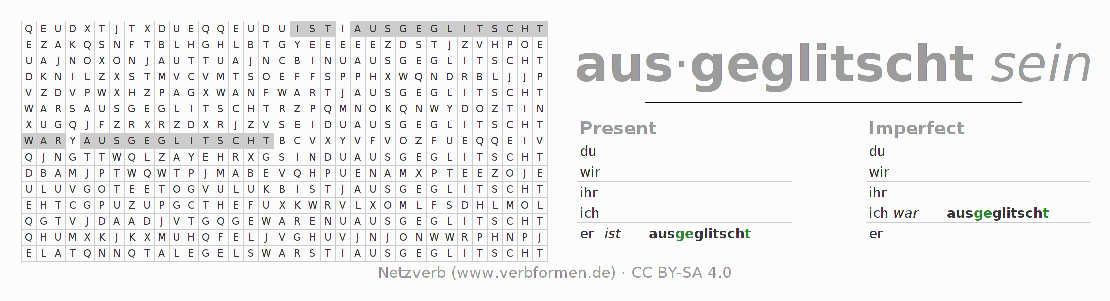 With these search word puzzles you can learn the conjugation of the German verb ausglitschen.