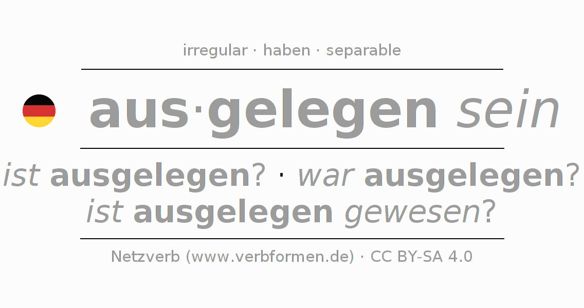 Worksheets are used generally for the conjugation of the verb ausliegen in teaching. The materials can be used as Open Educational Resources (OER) for exercises, for games and as Tasks (CC BY-SA 4.0). There are many different types of tasks available for the verb ausliegen (hat). These are overview sheets with complete conjugation, puzzles and games that require joint learning. The entire educational material is available for free as a PDF download, as pictures and as an interactive browser version. In addition to the tasks, countless examples for ausliegen also provide an aid to using the verb.