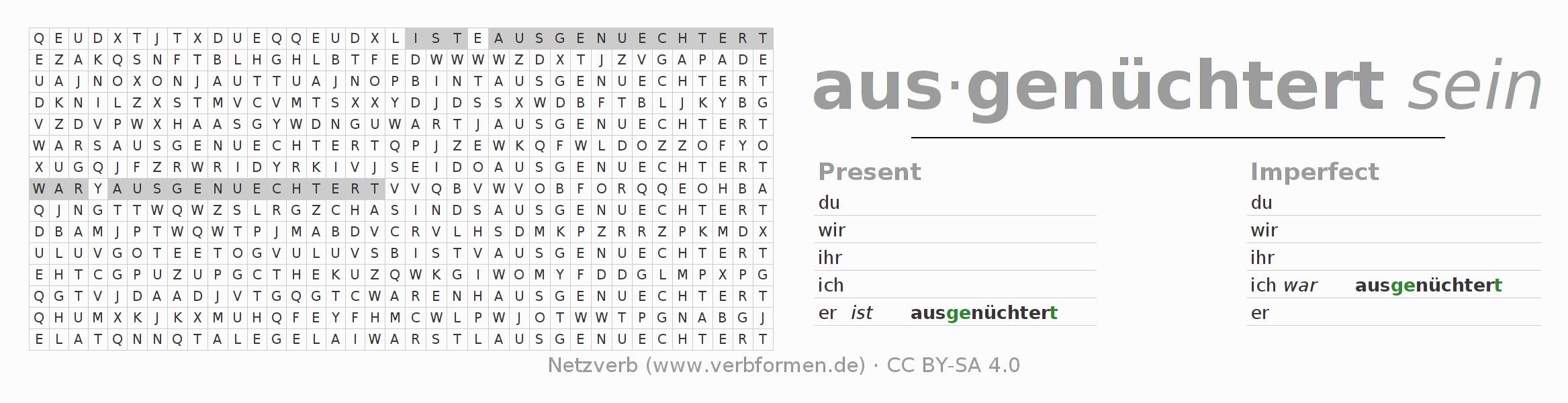 With these search word puzzles you can learn the conjugation of the German verb ausnüchtern.