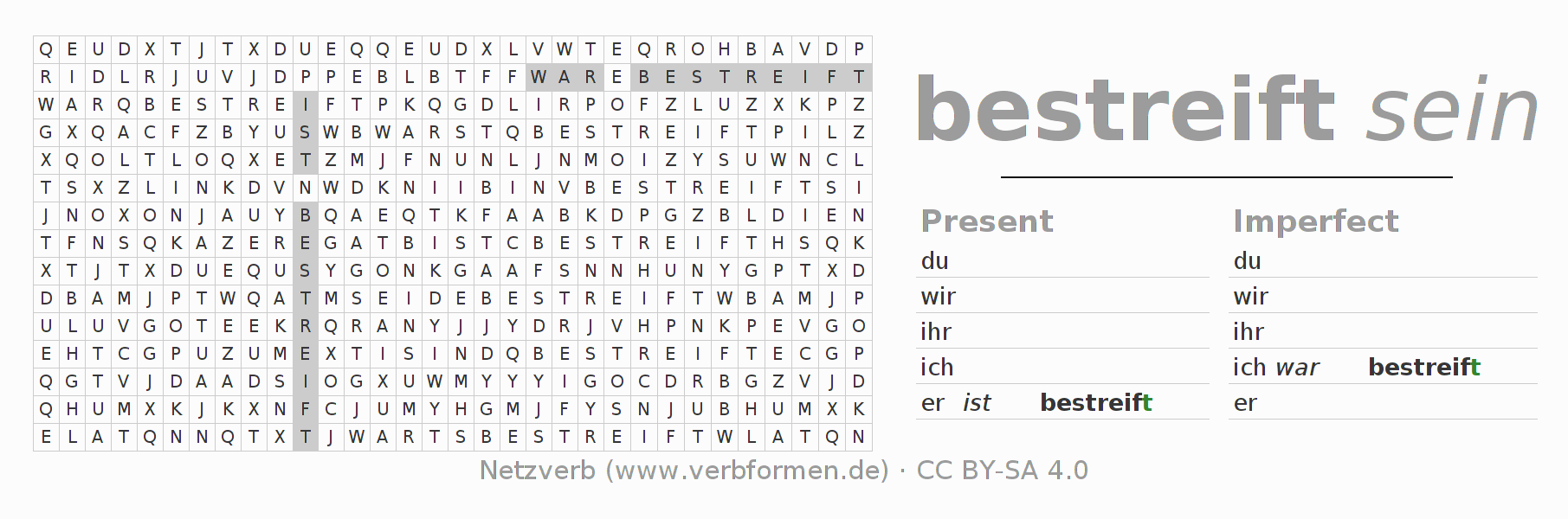 With these search word puzzles you can learn the conjugation of the German verb bestreifen.