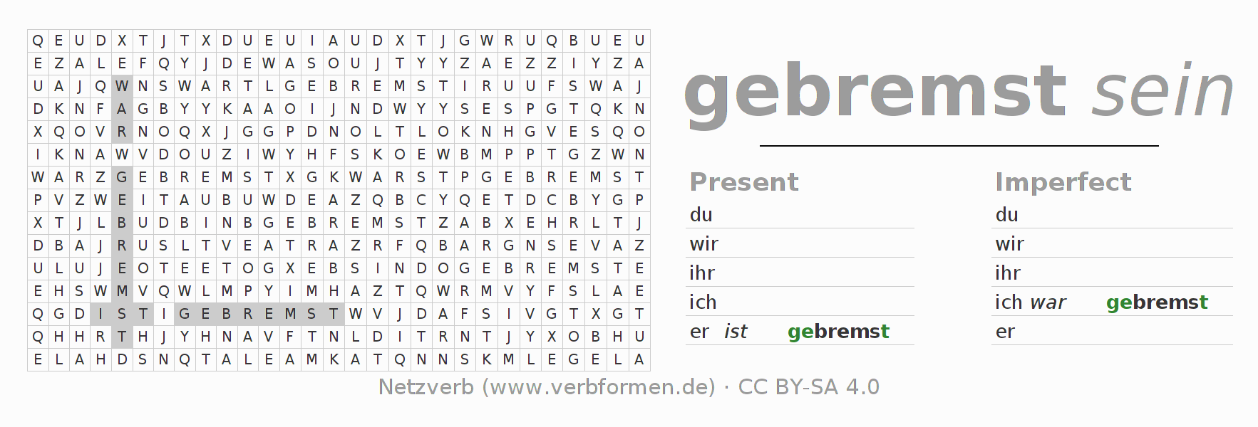 With these search word puzzles you can learn the conjugation of the German verb bremsen.