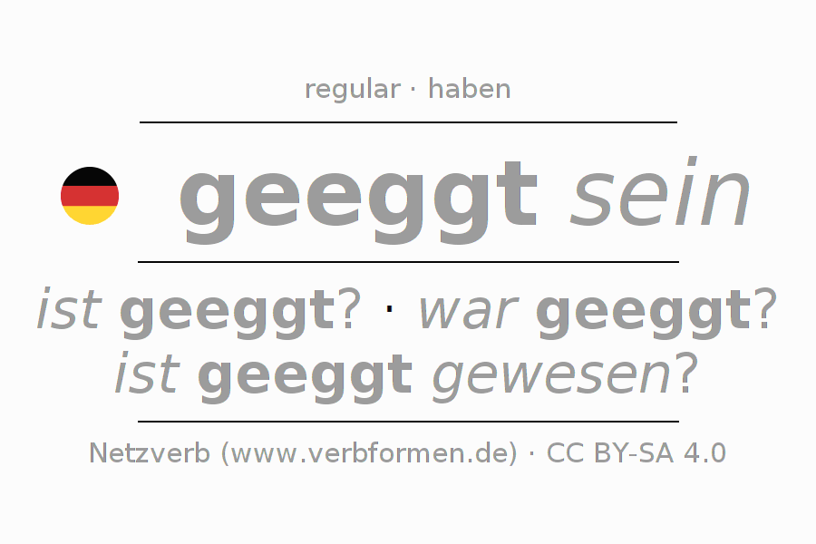 Worksheets are used generally for the conjugation of the verb eggen in teaching. The materials can be used as Open Educational Resources (OER) for exercises, for games and as Tasks (CC BY-SA 4.0). There are many different types of tasks available for the verb eggen. These are overview sheets with complete conjugation, puzzles and games that require joint learning. The entire educational material is available for free as a PDF download, as pictures and as an interactive browser version. In addition to the tasks, countless examples for eggen also provide an aid to using the verb.