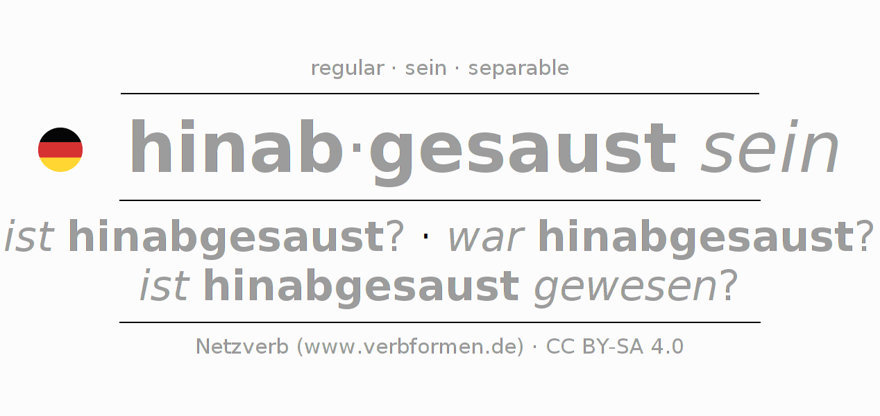 Conjugation tables for all tenses of the verb hinabsausen