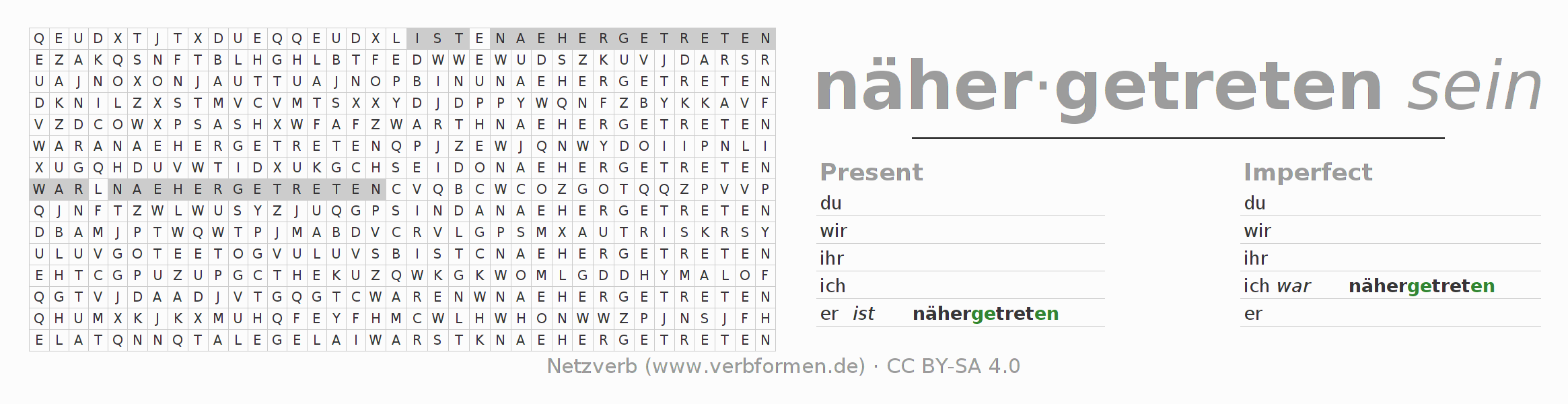With these search word puzzles you can learn the conjugation of the German verb nähertreten.