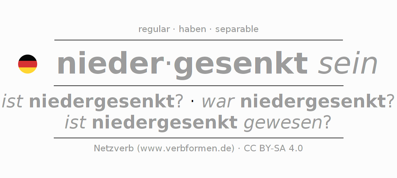 Flash cards, learning cards, learning notes for all tenses of the verb niedersenken